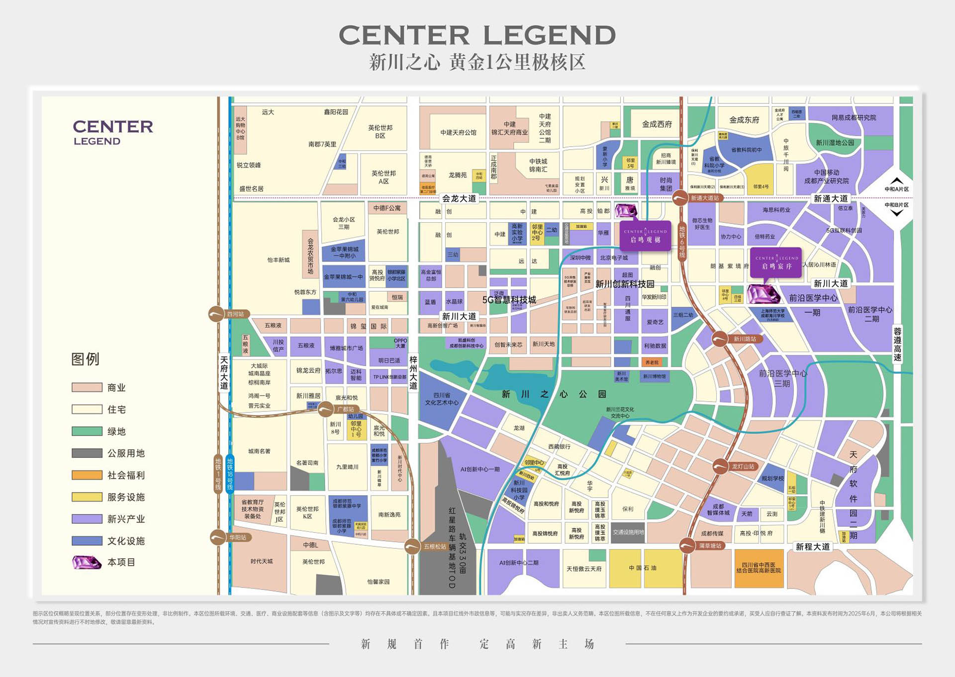 成都六号线穿城而过,启鸣双子在地段上依托6号线,承上启下,是新川核心中的核心地段,新川聚焦人工智能、5G通信和生物医药三大核心产业,已建成AI创新中心、前沿医学中心等载体,并引入中微电子、网易数字产业基地等龙头企业。