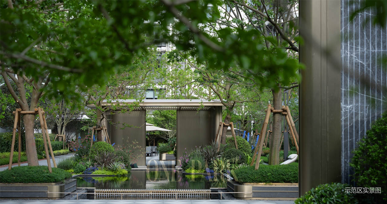 约9000㎡地面为花岗石材;为打造独特墅区景观,移植名贵树种,中庭景观廊架全面扩容,公区软装与儿童乐园品质升级。
