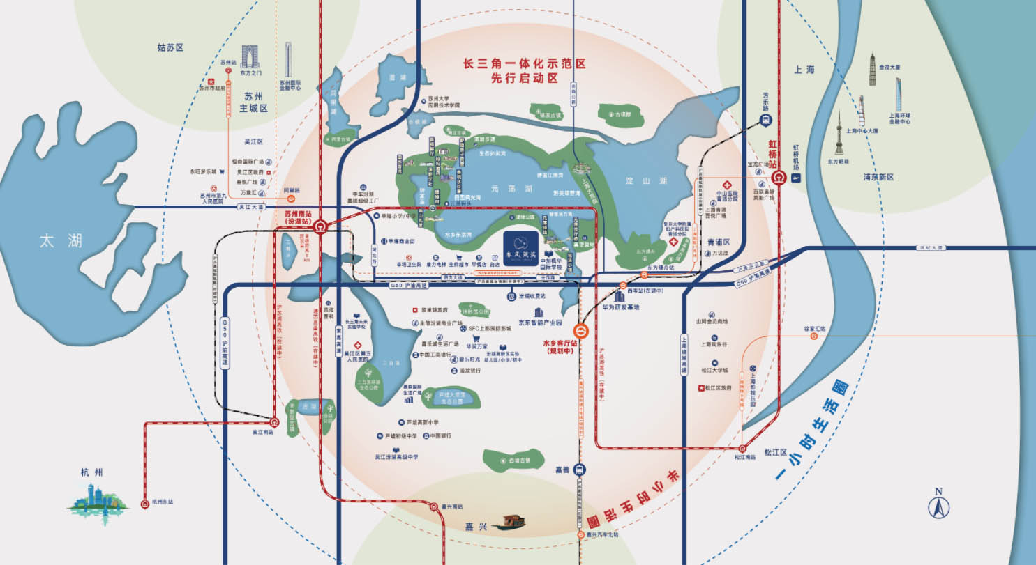 这里汇聚着众多城市地标、丰富立体交通、全维优质配套,承担起长三角一体化发展的综合性节点重任,站在城市发展的超级风口,距离上海青浦仅800米,绿城&蓝城春风湖滨,以占据澎湃未来前景的天赋优势,享受时代发展的政策红利。