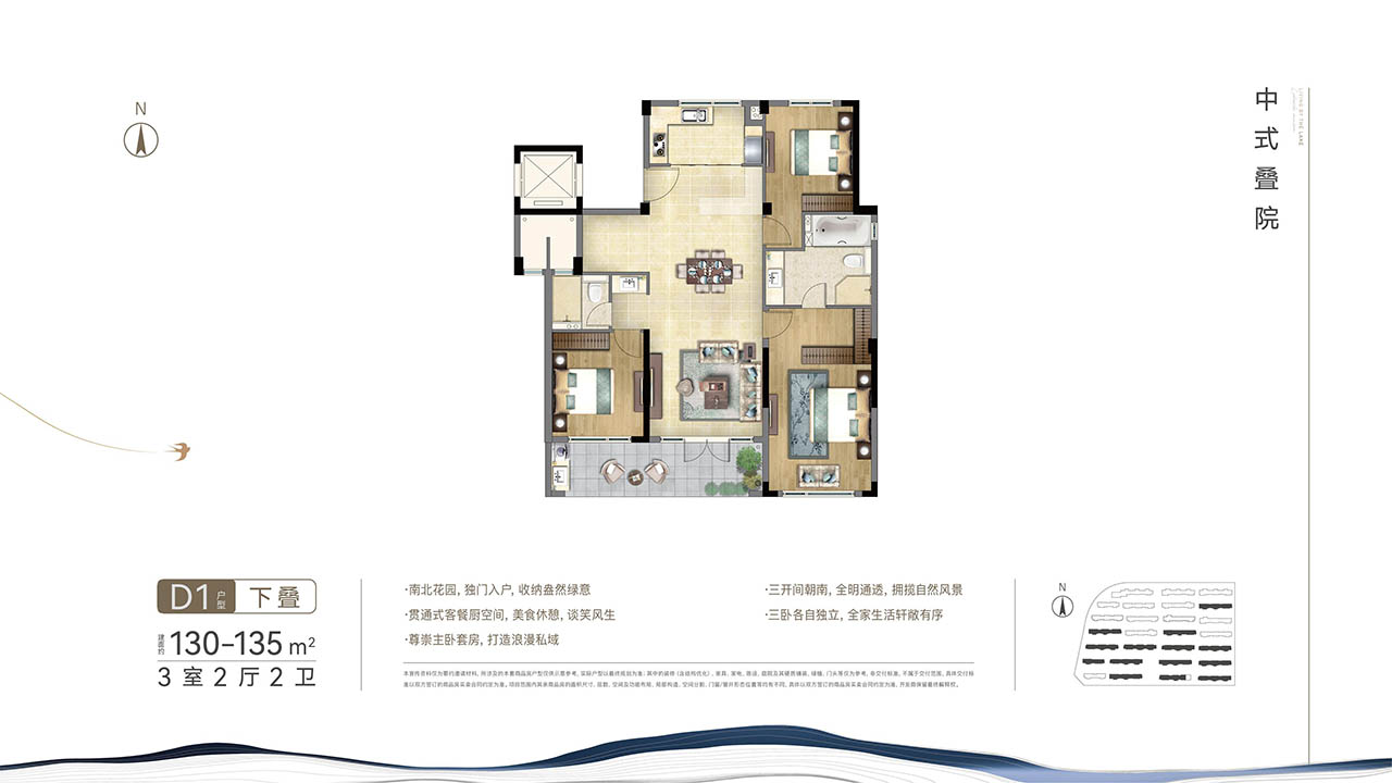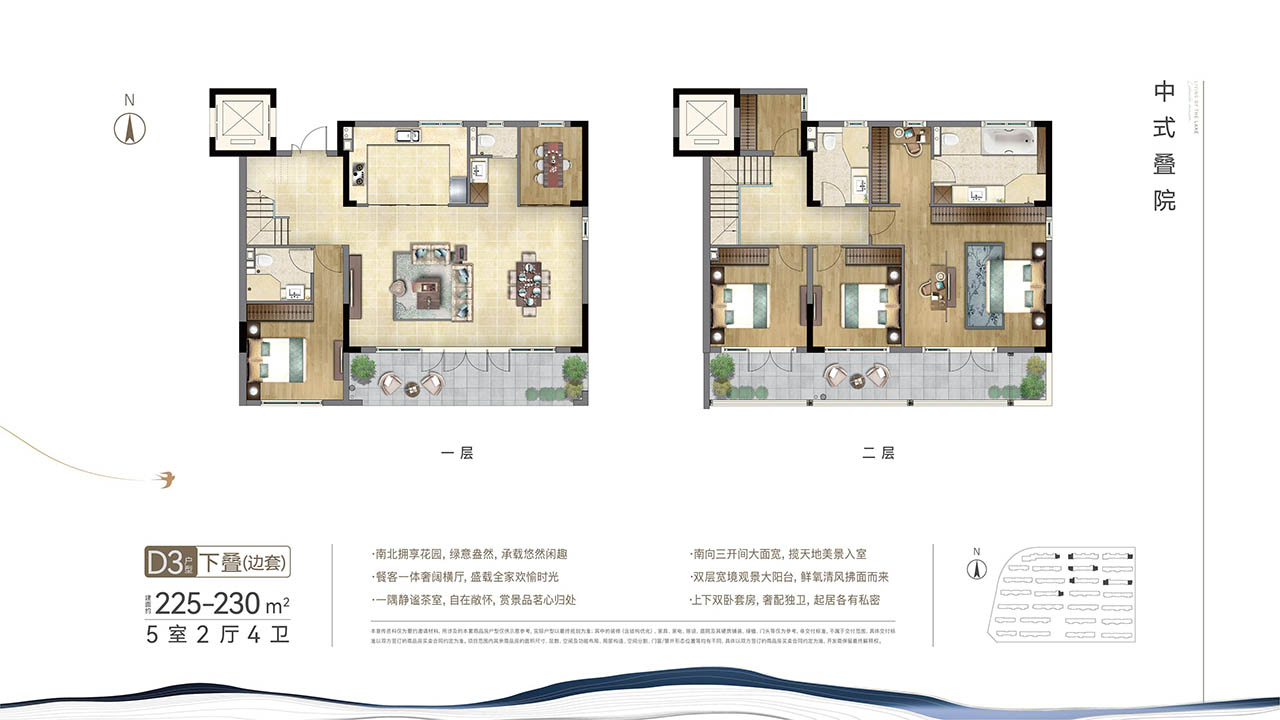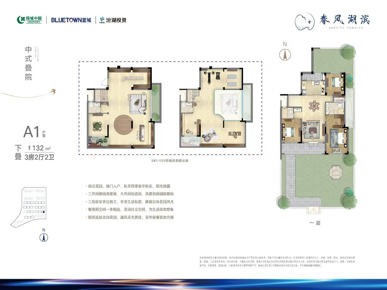顺应吴江文脉肌理,融合古代官式建筑,用逐层退台的方式,将叠院的阳台和露台面积扩展到极致,可谓是“层层是花园,户户有园林”。纯粹低密的叠院住区,北临元荡湖,推窗即可享受无界湖景风光,实现临湖而居的美好愿景。
